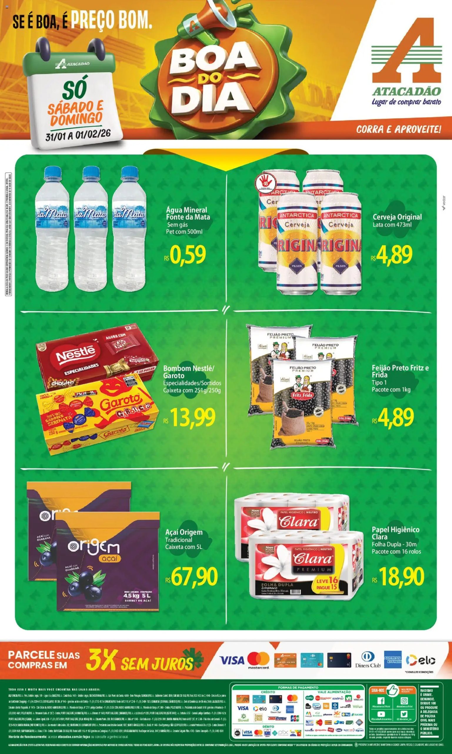 de sábado 31/01/2026 até domingo 01/02/2026